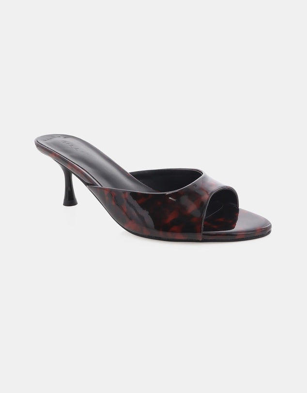 Bunita by Billini is a peep-toe stiletto mule featuring a rich tortoiseshell finish